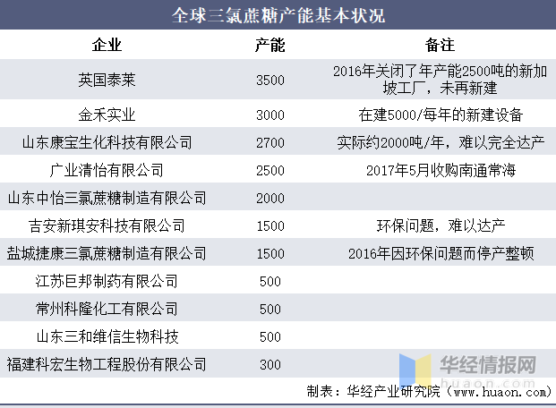 三氯蔗糖产业报告:产能/竞争格局/出口分析来源:华经情报网