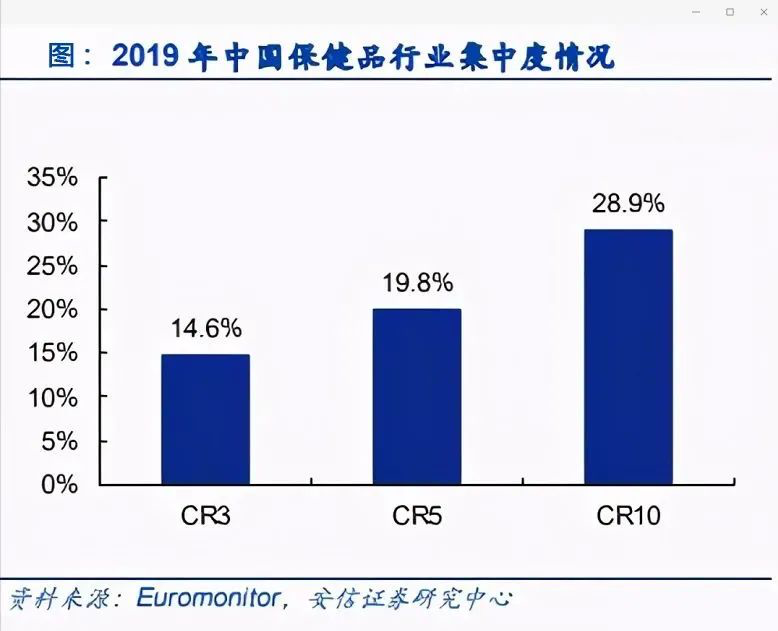 BIFIX 双歧杆菌酸奶和LIBERA牛奶巧克力为格力高功能性示食品的代表。2008年格力高推出餐,添加具有极强抗胃酸和消化液能力的耐酸双歧杆菌,能够大量发酵低聚糖和膳食纤维,形成短链脂肪酸,改善便秘和肥胖问题,2015年Bifix 系列产品成功得到审批成为功能 性保健食品。2013年,Bifix系列产品销售额高达259亿日元,是2012年的3.3倍。2016年3 月格力高推出一款不易发胖的功能型巧克力“LIBERA”,加入可控制吸收糖分与脂肪的 食物纤维“难消化性食用糊精”,所含糖分减少30%。截至 2017年3月,LIBERA巧克力已累计销售1200万包,调查发现其女性消费者占60%左右,味道好评占比 80%,购买两次以上的女性占15%。根据日本健康产业杂志社调查报告,BIFIX双歧杆菌酸奶和LIBERA 牛奶巧克力在2017日本功能性标示食品销售排行榜中分别排名第一和第七。 4.2.3. 可果美:深耕番茄领域,番茄汁受到大众喜爱 可果美深耕番茄领域,原料品种改不断改良。可果美(Kagome)初创于1899年,主要业务为国内外食品的制造、采购与销售。可果美国内业务分为加工食品、农业和其他三部分,其中加工食品部门以饮料与调味料的生产销售为主,主打番茄汁,并在1933 年推出第一款产品。加工食品部门为可果美的核心部门,2019年营收达83.9亿元人民币,同口径下同比 增长5.4%,营业利润达7.1 亿元人民币,同口径下同比增长8.5%。针对日本人蔬菜摄取普遍不足的现象,可果美对番茄的营养价值进行充分挖掘,研究发现番茄红素可以增加血液中高密度脂蛋白胆固醇的含量,进而通畅血管,有效降低血压,并成功培育出番茄红素是普通番茄5倍的“凛凛子”特种番茄,2016年获得功能性机能食品称号。此外,可果美对日本国民的蔬菜摄取时间进行专门研究,发现人体在早晨吸收番茄红素的效率最高,因此可果美通过多种渠道宣传早晨饮用番茄汁的饮食方式,推动了产品销售规模的大幅增长。可果美不在其他功能性成分上研究与挖掘,而是深入研究原料品种的不断改良,通过技术创新不断推出新产品。2016年,可果美销售额同比增长 328%,2017、2018年同比增速在25%-30%之间,番茄汁、蔬菜汁系列功能性标示食品持续增长。 4.2.4. 朝日食品集团:宣传推广新颖,致力提升产品附加值 朝日食品集团主营营养补品,致力提高产品附加值。朝日食品集团隶属于日本酒精饮料龙头 朝日控股,由朝日食品与保健株式会社、和光堂株式会社和天野实业株式会社3家公司合并而成,并于2016年开始营业,主营食品点心、保健食品、营养补充剂、婴儿奶粉及辅食、食品原料等。朝日集团初创于1949 年,主营业务分为酒类业务、饮料业务、食品业务和国际业务,食品业务部门是朝日集团的第三大业务部门,2019年营收达74.5亿元人民币,同比增加 7.3%,营业利润为8.0亿元人民币,同比增加 10.7%。朝日食品集团2018年发展战 略指出要通过强化主要品牌,为人们的日常生活提供美味和附加价值,发布健康导向的食品 和饮料产品,有针对性地扩大产品范围,满足不同人群的健康需求。 银杏叶功能性食品与Dear Natura黄金版 EPA&DHA是朝日食品集团功能性标示食品的代表。根据日本九州大学统计,2025年日本认知症患者人数将超过700万。随着日本人口老龄化导致的认知症人口增加问题的加剧,朝日食品集团推出银杏叶提取物,成为针对老年人群认知功能改善的代表产品。该产品添加来自德国制药公司Dr. Willmar Schwabe 的银杏叶提取物黄酮苷和萜内酯,在符合GMP标准的工厂内按照严格标准提取,能够有效维持健康 老龄人记忆力。此外,朝日食品集团以中性脂肪正常或者偏高的健康成年人为目标,推出Dear Natura系列产品,其中黄金版EPA&DHA 在2015年成功获得审批成为功能性标示食品,主要成分EPA和DHA有助于降低血液中的中性脂肪。朝日食品集团与知名漫画家 radiowada 合作,推出“惊讶男”系列广告,扩大产品的知名度,与经典 Natura made 超级 鱼油相比,产品设计及宣传推广更为精细。 4.3. 放眼国内:保健食品市场本土占优,普通食品领域外资抢眼 4.3.1. 保健食品:头部主要为中国企业,CR3 占据 1/4 市场份额,以专业保健品牌为主 就我国相关部门注册备案的保健食品市场而言,其大部分为膳食补充剂产品(根据欧睿咨询, 2017 年维生素和膳食补充剂市场占我国保健品市场规模的 59%)。在我国膳食补充剂市场上, 根据 Euromonitor 数据,2019 年中国膳食补充剂行业前五大企业分别为汤臣倍健、无限极、 安利、完美和东阿阿胶,其市占率分别为 9.9%、9.1%、5.8%、4.5%、4.4%,其中汤臣倍 健经过 10 年发展,市场份额从 2010 年的 1.4%增至 2019 年的 9.9%,超越安利位于行业品牌首位。近年来 CR3 市场份额稳定在 25%左右,且前三玩家的份额呈现分散化趋势,但相 较于国外市场集中度仍具提升空间。